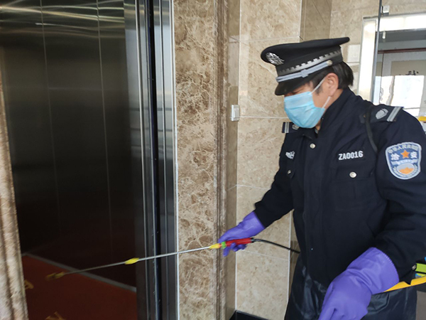電梯里貼上了暖心的抽紙,門把手也勤消毒做到重點防范。