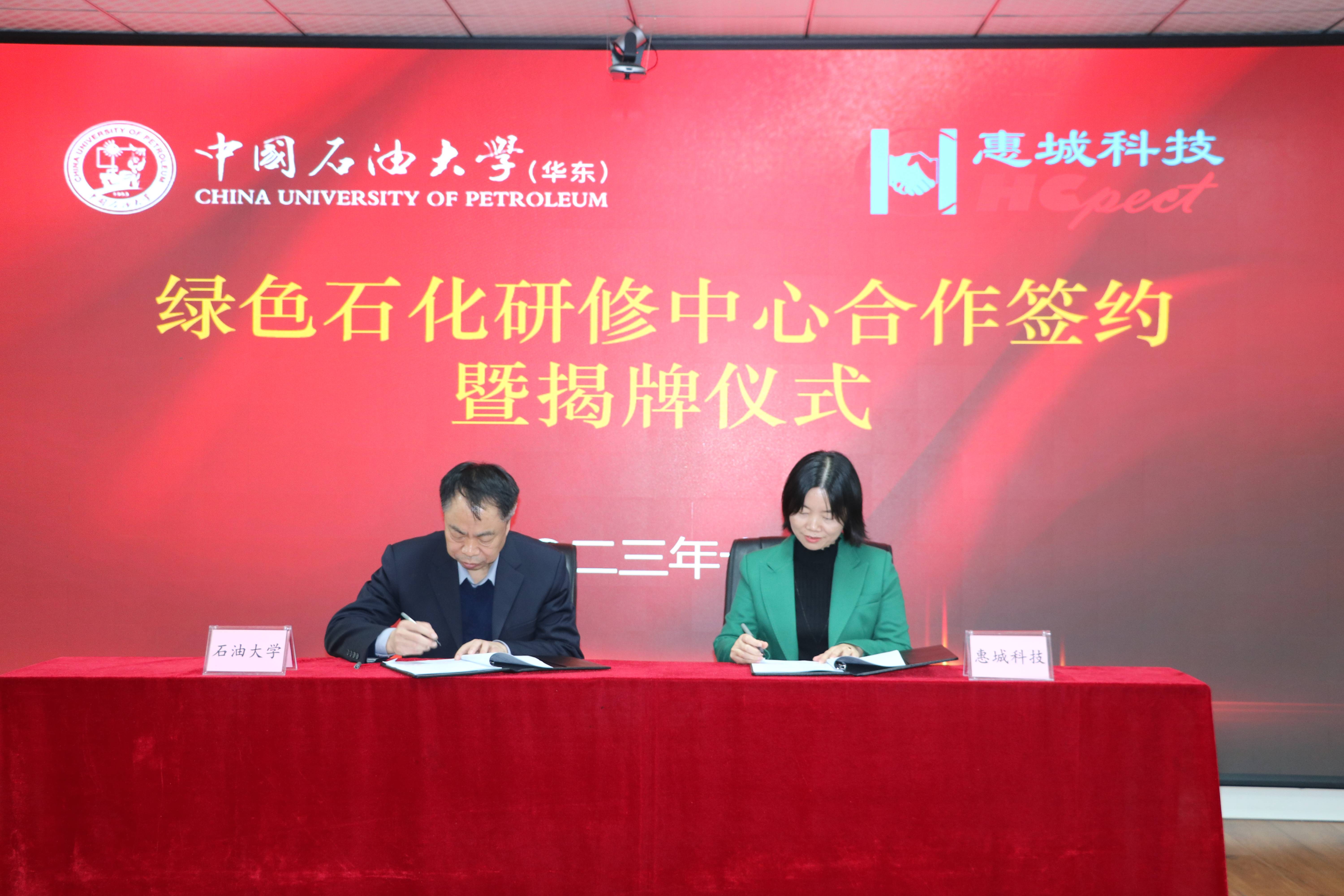 簽約儀式 揭牌儀式 中國石油大學(華東)教育發展中心主任韓紅江致辭 韓江紅主任在致辭中表示,服務石化行業是中國石油大學(華東)繼續教育的立足之本,也是特色優勢所在。通過綠色石化研修中心的建立,校企雙方將以此為契機,圍繞危廢處置、資源化產品、煙氣治理等方面開展培訓課程開發、現場教學實踐等合作,將綠色發展理念融入課程體系,共同助力綠色環保技術的推廣運用,推動經濟社會發展與生態環境保護協調發展。 惠城環保董事長葉紅致辭 葉紅董事長在致辭中表示,綠色石化研修中心的落地揭牌將是惠城環保與中國石油大學(華東)在又一新領域的優勢合作;是在國家大力倡導環境保護、雙碳達標政策背景下,充分整合惠城環保在石化環保領域的技術創新成果和中國石油大學(華東)優秀的繼續教育力量,共同助力石化行業綠色轉型發展的戰略性舉措;是惠城環保與中國石油大學(華東)在助推國家環保事業方面共同承擔的社會責任。雙方將全力推進該合作項目的落地實施,為國家綠水青山貢獻校企力量。 合影留念 本次合作是惠城環保與中國石油大學(華東)在校企深入合作基礎上的又一個重要里程碑,標志著雙方在推動石化行業綠色發展和人才培養方面邁出了更加堅實的一步。綠色石化研修中心將成為雙方共同成長的搖籃,為我國綠色石化事業的發展做出積極的貢獻。