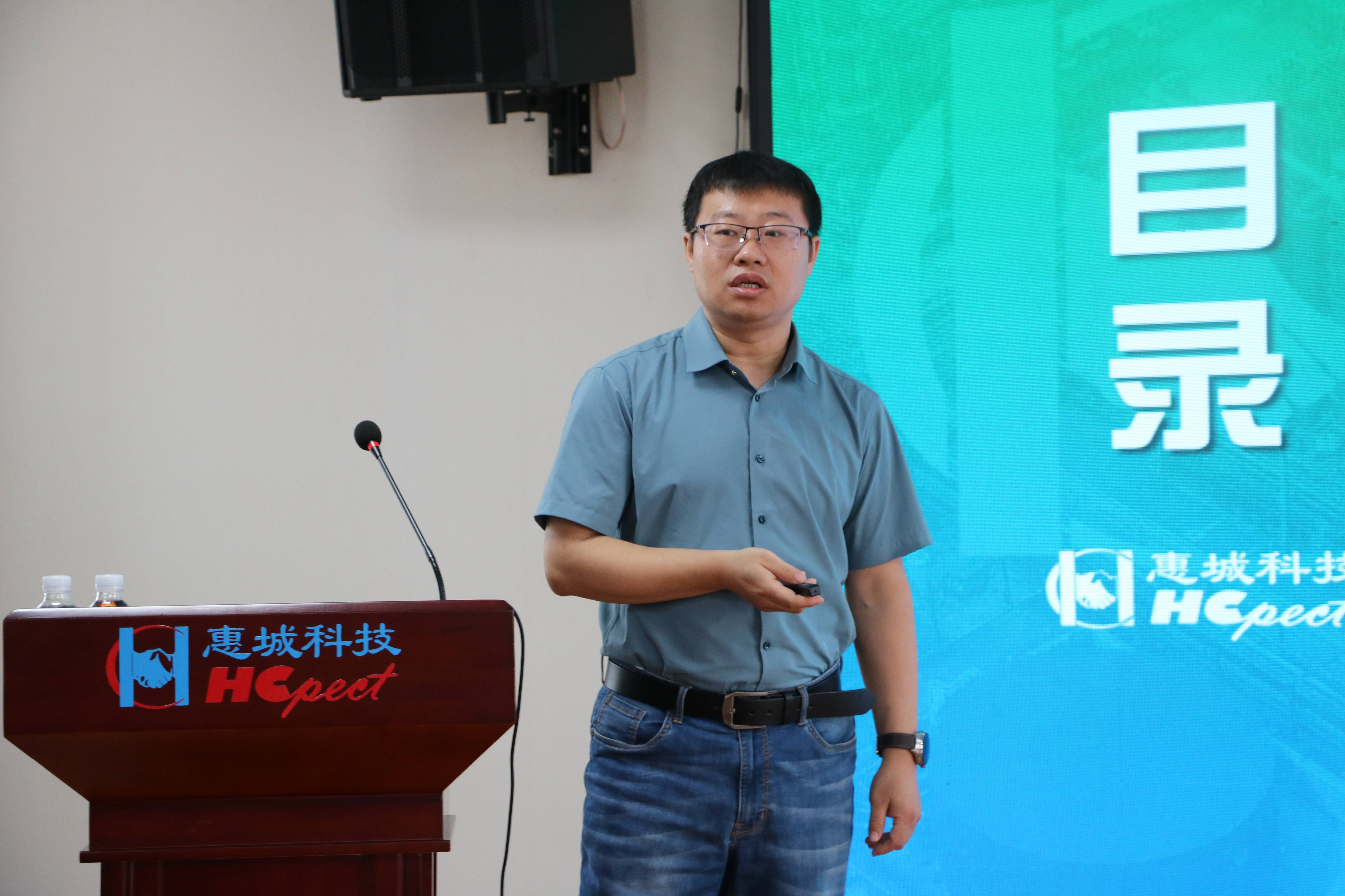 惠城環(huán)??偨?jīng)理助理李世鵬為新員工培訓(xùn)“集團(tuán)發(fā)展歷程、企業(yè)文化、職場(chǎng)新人角色轉(zhuǎn)換等”