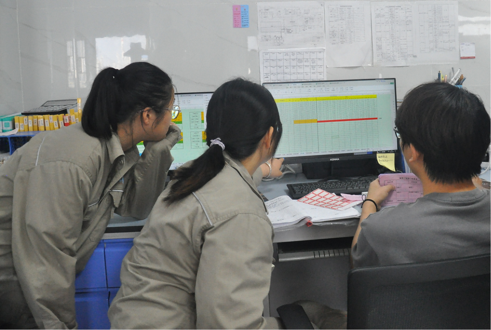 巾幗不讓須眉,生產部的女孩子們也積極投入到培訓學習當中。除了要到現場學習,她們還需要在中控室及時監控和調整參數,迅速發現和處理特殊情況,及時與現場操作人員聯系。